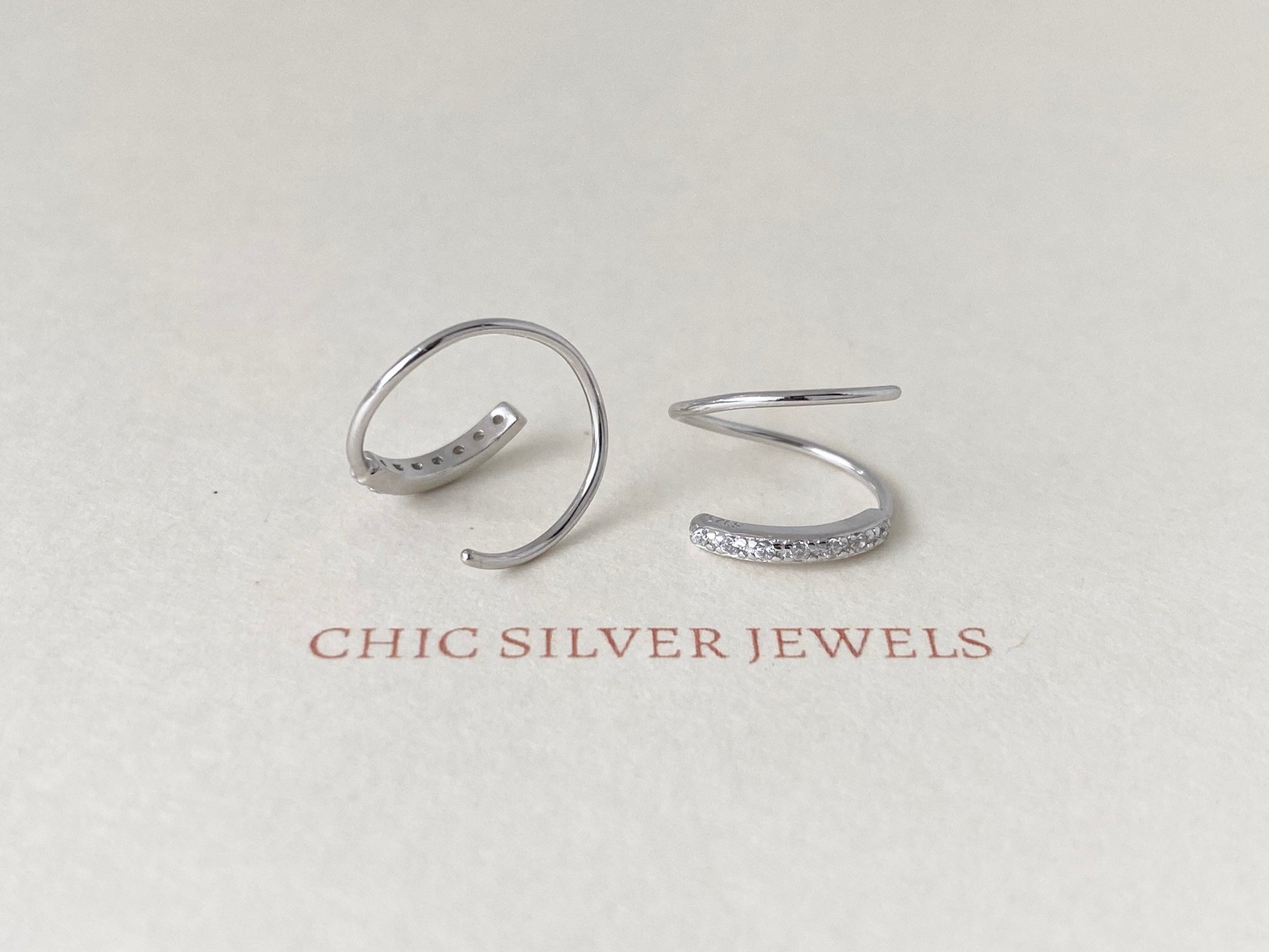 These contemporary hoop earrings are designed to create an illusion of double hoop with one single piercing required. They are one-of-a-kind earrings. They add a bit of chicsy vibe to your outfit, creating smart, elegant and sophisticated look.