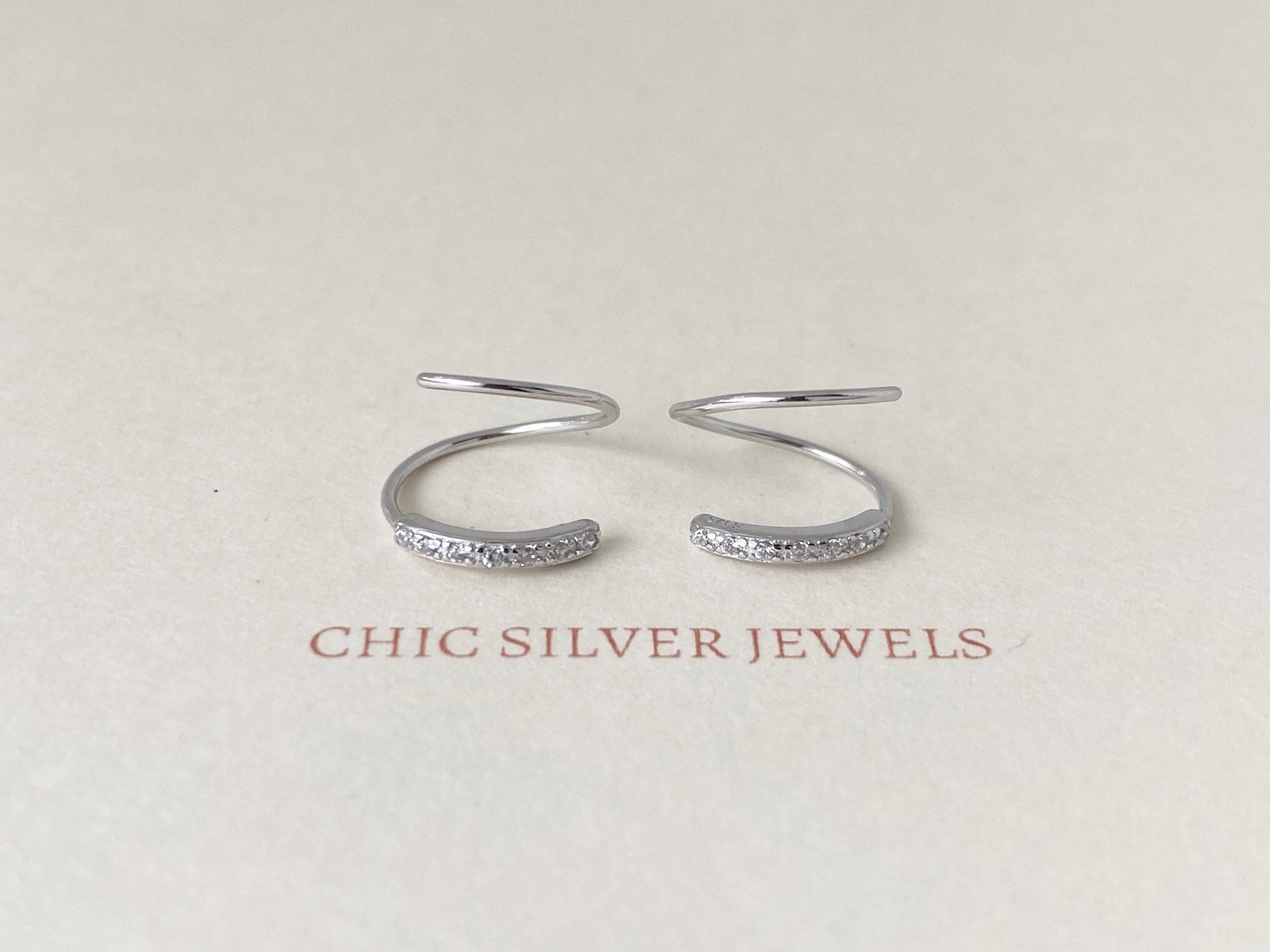 CZ Double Hoop Earrings, Sterling Silver Earrings, Only 1 Piercing Needed, Fake Double Piercing, Faux Piercing